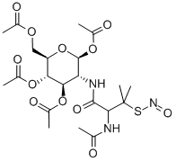 N-(S-亚硝基-N-乙酰基-D,L-青霉胺)-2-氨基-2-脱氧-1,3,4,6-四-O-乙酰基-β-D-吡喃葡萄糖 2-(N-Acetyl-S-nitroso-D-penicillamido)-2-deoxy-1,3,4,6-tetra-O-acetyl-beta-D-glucopyranose |