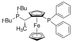(S)-1-[(Rp)-2-(二苯基膦基)二茂铁]乙基二叔丁基膦, 98% (S)-1-[(Rp)-2-(Diphenylphosphino)ferrocenyl]ethyldi-tert-butylphosphine |