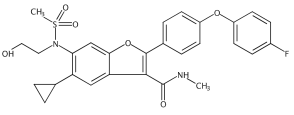 5-Cyclopropyl-2-[4-(4-fluoro-phenoxy)-phenyl]-6-[(2-hydroxy-ethyl)-methanesulfonyl-amino] -benzofuran-3-carboxylic acid methylamide, ≥98% 5-Cyclopropyl-2-[4-(4-fluoro-phenoxy)-phenyl]-6-[(2-hydroxy-ethyl)-methanesulfonyl-amino] -benzofuran-3-carboxylic acid methylamide |