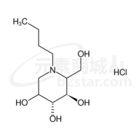 N-丁基脱氧甘露霉素,盐酸盐 (3R,4R)-1-butyl-2-(hydroxymethyl)piperidine-3,4,5-triol hydrochloride |
