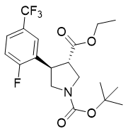 反式-1-(叔丁基)3-乙基-4-(2-氟-5-(三氟甲基)苯基)吡咯烷-1,3-二羧酸酯, 90%(HNMR) Trans-1-(tert-butyl) 3-ethyl-4-(2-fluoro-5-(trifluoromethyl)phenyl)pyrrolidine-1,3-dicarboxylate |