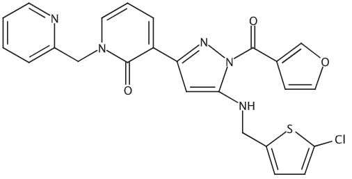 3-(5-[(5-Chlorothiophen-2-yl)methyl]amino- 1-[(furan-3-yl)carbonyl]-1H-pyrazol-3-yl)-1-(pyridin-2-ylmethyl)-1,2-dihydropyridin-2-one, ≥98% 3-(5-[(5-Chlorothiophen-2-yl)methyl]amino- 1-[(furan-3-yl)carbonyl]-1H-pyrazol-3-yl)-1-(pyridin-2-ylmethyl)-1,2-dihydropyridin-2-one |