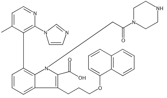 7-[2-(1H-Imidazol-1-yl)-4-methyl-3-pyridinyl]-3-[3-(1-naphthyloxy)propyl]-1- [2-oxo-2-(1-piperazinyl)ethyl]-1H-indole-2-carboxylic acid, ≥98% 7-[2-(1H-Imidazol-1-yl)-4-methyl-3-pyridinyl]-3-[3-(1-naphthyloxy)propyl]-1- [2-oxo-2-(1-piperazinyl)ethyl]-1H-indole-2-carboxylic acid |