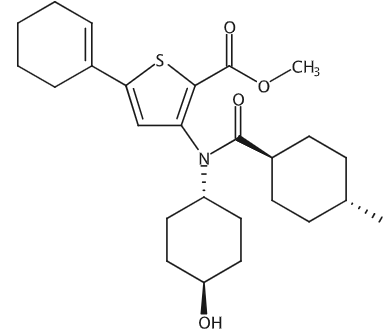 5-Cyclohex-1-enyl-3-[(trans-4-hydroxy-cyclohexyl)- (trans-4-methyl-cyclohexanecarbonyl)-amino]-thiophene-2-carboxylic acid methyl ester, ≥98% 5-Cyclohex-1-enyl-3-[(trans-4-hydroxy-cyclohexyl)- (trans-4-methyl-cyclohexanecarbonyl)-amino]-thiophene-2-carboxylic acid methyl ester |