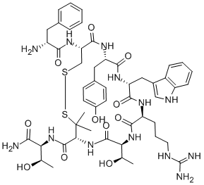 模块2. 危险性概述 2.1 GHS分类 根据化学品全球统一分类与标签制度(GHS)的规定,不是危险物质或混合物。 2.3 其它危害物 - 无 模块3. 成分/组成信息 3.1 物 质 : C51H69N13O11S2 分子式 : 1,104.3 g/mol 分子量 无 模块4. 急救措施 4.1 必要的急救措施描述 吸入 如果吸入,请将患者移到新鲜空气处。 如果停止了呼吸,给于人工呼吸。 皮肤接触 用肥皂和大量的水冲洗。 眼睛接触 用水冲洗眼睛作为预防措施。 食入 切勿给失去知觉者从嘴里喂食任何东西。 用水漱口。 4.2 主要症状和影响,急性和迟发效应 据我们所知,此化学,物理和毒性性质尚未经完整的研究。 4.3 及时的医疗处理和所需的特殊处理的说明和指示 无数据资料 模块5. 消防措施 5.1 灭火介质 灭火方法及灭火剂 用水雾,耐醇泡沫,干粉或二氧化碳灭火。 5.2 源于此物质或混合物的特别的危害 碳氧化物, 氮氧化物, 硫氧化物 5.3 给消防员的建议 如必要的话,戴自给式呼吸器去救火。 5.4 进一步信息 无数据资料 模块6. 泄露应急处理 6.1 人员的预防,防护设备和紧急处理程序 防止粉尘的生成。 防止吸入蒸汽、气雾或气体。 6.2 环境保护措施 不要让产物进入下水道。 6.3 抑制和清除溢出物的方法和材料 扫掉和铲掉。 存放进适当的闭口容器中待处理。 6.4 参考其他部分 丢弃处理请参阅第13节。 模块7. 操作处置与储存 7.1 安全操作的注意事项 在有粉尘生成的地方,提供合适的排风设备。 7.2 安全储存的条件,包括任何不兼容性 贮存在阴凉处。 容器保持紧闭,储存在干燥通风处。 建议的贮存温度: -20 °C 7.3 特定用途 无数据资料 模块8. 接触控制和个体防护 8.1 容许浓度 最高容许浓度 没有已知的国家规定的暴露极限。 8.2 暴露控制 适当的技术控制 常规的工业卫生操作。 个体防护设备 眼/面保护 请使用经官方标准如NIOSH (美国) 或 EN 166(欧盟) 检测与批准的设备防护眼部。 皮肤保护 所选择的保护手套必须符合EU的89/686/EEC规定和从它衍生出来的EN 376标准。 戴手套取 手套在使用前必须受检查。 请使用合适的方法脱除手套(不要接触手套外部表面),避免任何皮肤部位接触此产品. 使用后请将被污染过的手套根据相关法律法规和有效的实验室规章程序谨慎处理. 请清洗并吹干双手 身体保护 根据危险物质的类型,浓度和量,以及特定的工作场所来选择人体保护措施。, 防护设备的类型必须根据特定工作场所中的危险物的浓度和含量来选择。 呼吸系统防护 不需要保护呼吸。如需防护粉尘损害,请使用N95型(US)或P1型(EN 143)防尘面具。 呼吸器使用经过测试并通过政府标准如NIOSH(US)或CEN(EU)的呼吸器和零件。 模块9. 理化特性 9.1 基本的理化特性的信息 a) 外观与性状 形状: 粉末 颜色: 白色 b) 气味 无数据资料 c) 气味阈值 无数据资料 d) pH值 无数据资料 e) 熔点/凝固点 无数据资料 f) 起始沸点和沸程 无数据资料 g) 闪点 无数据资料 h) 蒸发速率 无数据资料 i) 易燃性(固体,气体) 无数据资料 j) 高的/低的燃烧性或爆炸性限度 无数据资料 k) 蒸汽压 无数据资料 l) 蒸汽密度 无数据资料 m) 相对密度 无数据资料 n) 水溶性 无数据资料 o) n-辛醇/水分配系数 无数据资料 p) 自燃温度 无数据资料 q) 分解温度 无数据资料 r) 粘度 无数据资料 模块10. 稳定性和反应活性 10.1 反应性 无数据资料 10.2 稳定性 无数据资料 10.3 危险反应的可能性 无数据资料 10.4 应避免的条件 无数据资料 10.5 不兼容的材料 强酸, 强碱 10.6 危险的分解产物 其它分解产物 - 无数据资料 模块11. 毒理学资料 11.1 毒理学影响的信息 急性毒性 无数据资料 皮肤刺激或腐蚀 无数据资料 眼睛刺激或腐蚀 无数据资料 呼吸道或皮肤过敏 无数据资料 生殖细胞突变性 无数据资料 致癌性 IARC: 此产品中没有大于或等于 0。1%含量的组分被 IARC鉴别为可能的或肯定的人类致癌物。 生殖毒性 无数据资料 特异性靶器官系统毒性(一次接触) 无数据资料 特异性靶器官系统毒性(反复接触) 无数据资料 吸入危险 无数据资料 潜在的健康影响 吸入吸入可能有害。 可能引起呼吸道刺激。 摄入如服入是有害的。 皮肤如果通过皮肤吸收可能是有害的。 可能引起皮肤刺激。 眼睛可能引起眼睛刺激。 接触后的征兆和症状 据我们所知,此化学,物理和毒性性质尚未经完整的研究。 附加说明 化学物质毒性作用登记: 无数据资料 模块12. 生态学资料 12.1 生态毒性 无数据资料 12.2 持久存留性和降解性 无数据资料 12.3 潜在的生物蓄积性 无数据资料 12.4 土壤中的迁移性 无数据资料 12.5 PBT 和 vPvB的结果评价 无数据资料 12.6 其它不利的影响 无数据资料 模块13. 废弃处置 13.1 废物处理方法 产品 将剩余的和未回收的溶液交给处理公司。 受污染的容器和包装 作为未用过的产品弃置。 模块14. 运输信息 14.1 联合国危险货物编号 欧洲陆运危规: -国际海运危规: -国际空运危规: - 14.2 联合国(UN)规定的名称 欧洲陆运危规: 非危险货物 国际海运危规: 非危险货物 国际空运危规: 非危险货物 14.3 运输危险类别 欧洲陆运危规: -国际海运危规: -国际空运危规: - 14.4 包裹组 欧洲陆运危规: -国际海运危规: -国际空运危规: - 14.5 环境危险 欧洲陆运危规: 否国际海运危规 海运污染物: 否国际空运危规: 否 14.6 对使用者的特别提醒 无数据资料 模块 15 - 法规信息 N/A 模块16 - 其他信息 N/A |