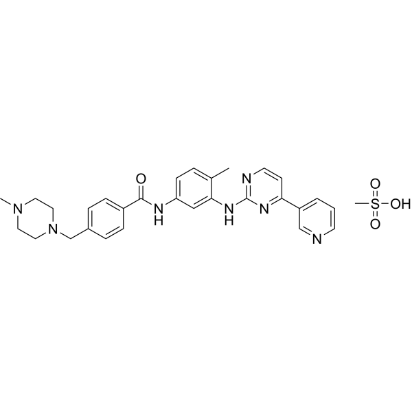 Imatinib Mesylate 是一种酪氨酸激酶抑制剂,可抑制 c-Kit,Bcr-Abl 和 PDGFR (IC50=100 nM)。