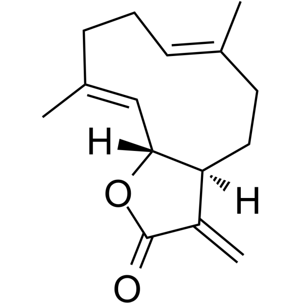Costunolide ((+)-Costunolide) 是一种天然的倍半萜内酯,它具有抗氧化、抗炎、抗过敏、骨重塑、神经保护、促进毛发生长、抗癌和抗糖尿病的特性。Costunolide 可诱导乳腺癌细胞周期阻滞和凋亡 (apoptosis)。
