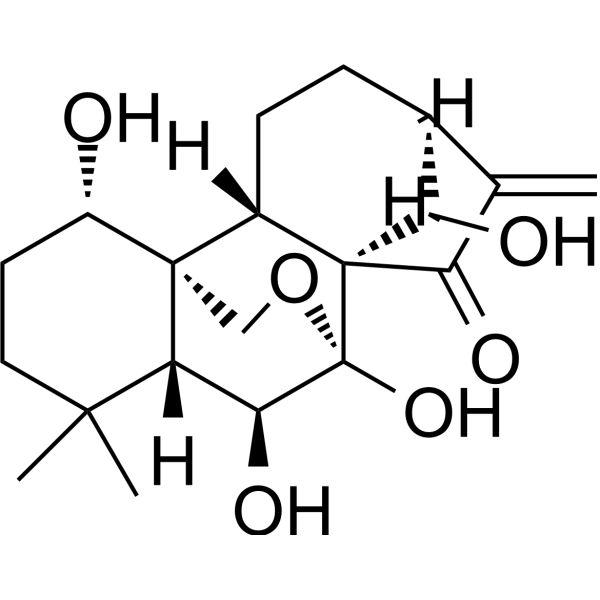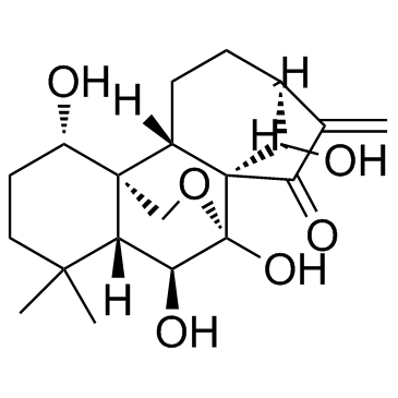 Oridonin 是从 Rabdosia rubescens 中得到的二萜,为 AKT 抑制剂,对 AKT1 和 AKT2 的 IC50 值分别为 8.4 和 8.9 μM;Oridonin 具有抗肿瘤、抗菌、抗炎等功效。