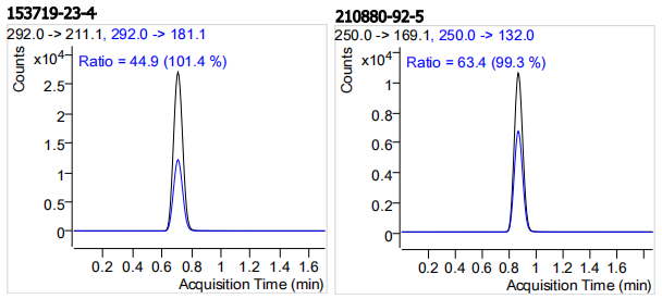The certified value(s) and uncertainty(ies) are determined in accordance with ISO 17034 with an 95% confidence level (k=2). Uncertainty is based on the Total Combined Uncertainty, including uncertainties of preparation, purity of neat materials, homogeneity, stability testing.