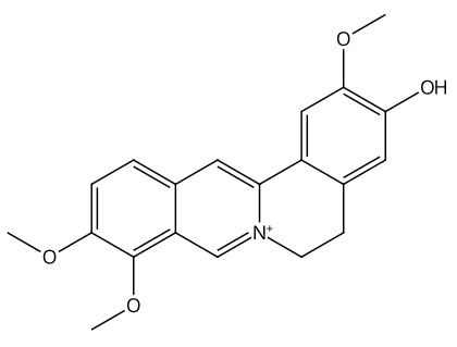 Jatrorrhizine 是一种有效的口服活性 uptake-2 transporter 抑制剂,可以从各种中药植物中分离出来。 Jatrorrhizine 通过抑制 HT22 海马神经元中的 MAPK 途径,在 H2O2 诱导的细胞凋亡中发挥关键的神经保护作用。