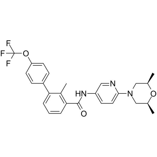 Erismodegib (LDE225) 是有效,选择性的 Smo 拮抗剂, 抑制鼠和人Smo的 IC50 分别为 1.3 nM 和 2.5 nM。
