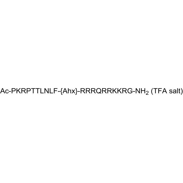 | 生物活性 | JTP10-△-TATi TFA is a selective JNK2 peptide inhibitor, with an IC50 of 92 nM, exhibiting 10-fold selectivity for JNK2 over JNK1 and JNK3. | ||||||