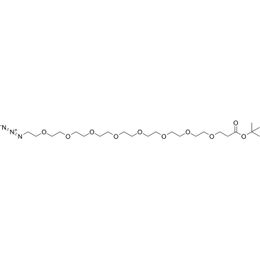 | 生物活性 | Azido-PEG8-Boc is a PEG- and Alkyl/ether-based PROTAC linker can be used in the synthesis of PROTACs. | ||||||||||||||||