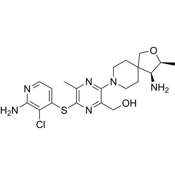 | 生物活性 | Vociprotafib (RMC-4630; SHP2-IN-7) is a SHP2 inhibitor extracted from patent WO2018013597. | ||||||||||||||||