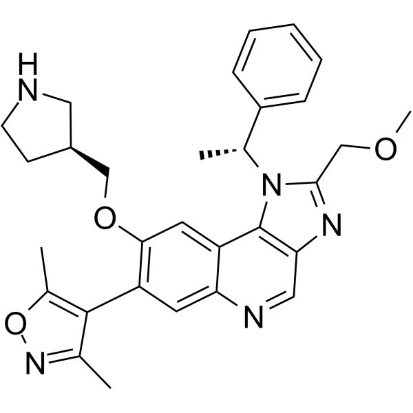 | 生物活性 | GSK778 (iBET-BD1) is a potent and selective BD1 bromodomain inhibitor of the BET proteins, with IC50s of 75 nM (BRD2 BD1), 41 nM (BRD3 BD1), 41 nM (BRD4 BD1), and 143 nM (BRDT BD1), respectively. GSK778 phenocopies the effects of pan-BET inhibitors in cancer models. | ||||||||||||||||||||||||