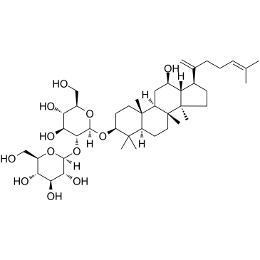 | 生物活性 | Ginsenoside Rk1 is a unique component created by processing the ginseng plant (mainly Sung Ginseng, SG) at high temperatures. Ginsenoside Rk1 has anti-inflammatory effect, suppresses the activation of Jak2/Stat3 signaling pathway and NF-κB. Ginsenoside Rk1 has anti-tumor effect, antiplatelet aggregation activities, anti-insulin resistance, nephroprotective effect, antimicrobial effect, cognitive function enhancement, lipid accumulation reduction and prevents osteoporosis. Ginsenoside Rk1 induces cell apoptosis by triggering intracellular reactive oxygen species (ROS) generation and blocking PI3K/Akt pathway. | ||||||||||||||||||||||||||||||||||||||||