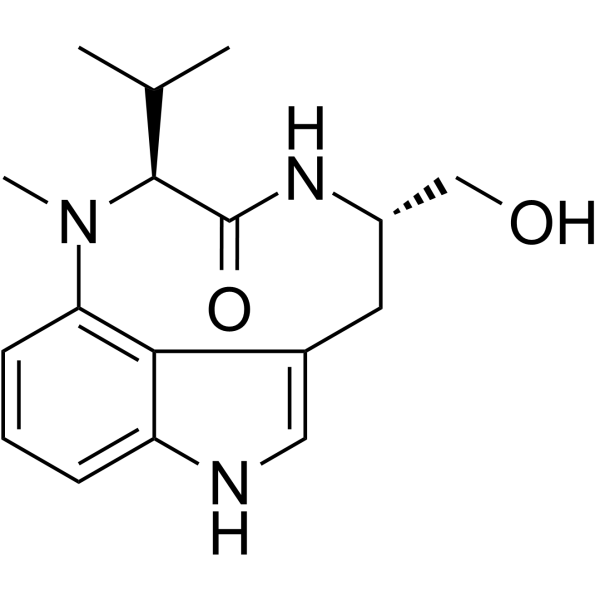 | 产品介绍 | (-)-Indolactam V 是 PKC 的激活剂,对 η-CRD2 (PKCη 代替肽),γ-CRD2 (PKCγ 代替肽) 的 Ki 值分别为 3.36 nM 和 1.03 μM,对 PKC C1A 和 C1B 结构域的 Kd 值分别为 5.5 nM (η-C1B),7.7 nM (ε-C1B),8.3 nM (δ-C1B),18.9 nM (β-C1A-long),20.8 nM (α-C1A-long),137 nM (β-C1B),138 nM (γ-C1A) 和 213 nM (γ-C1B),具有抗肿瘤活性。 | ||||||||||||||||