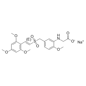 | 产品介绍 | Rigosertib sodium (ON-01910 sodium) 是一种多激酶抑制剂和选择性抗癌剂,通过抑制 PI3K/Akt 途径诱导细胞凋亡,促进组蛋白 H2AX 的磷酸化并诱导细胞周期中的 G2/M 期停滞。Rigosertib sodium 是一种选择性的非 ATP 竞争性 PLK1 抑制剂,IC50 值为 9 nM。 | ||||||||||||||||