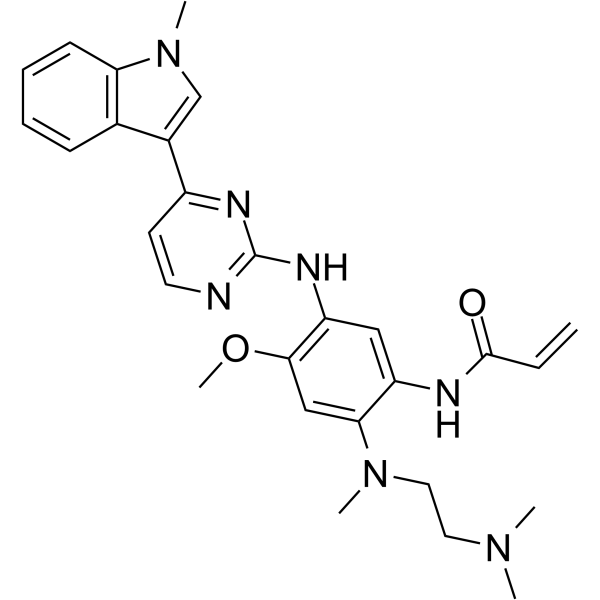 Osimertinib (AZD-9291) 是一种不可逆和突变的选择性的 EGFR 抑制剂,抑制EGFRL858R 和EGFRL858R/T790M 的 IC50 分别为12 和 1 nM。