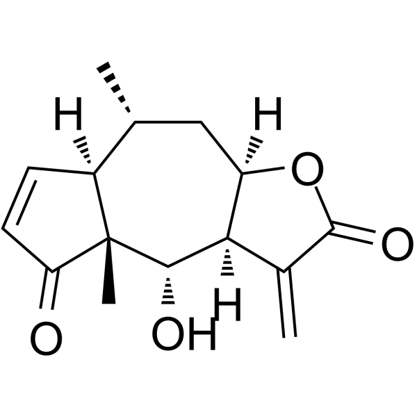 Helenalin 是一种抗炎的倍半萜内酯。Helenalin 通过直接靶向 p65 选择性抑制转录因子 NF-κB。Helenalin 具有烷基化活性,以 NF-κB 的 p65 亚基中的半胱氨酸巯基为靶点,从而抑制其 DNA 结合。