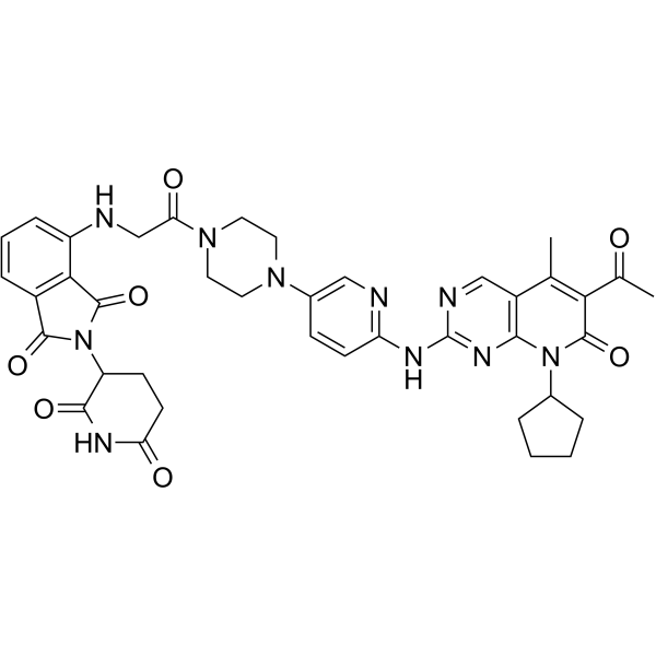 | 产品介绍 | XY028-140 是由 Cereblon 配体和 CDK 配体相连的 PROTAC。XY028-140 抑制癌细胞中的 CDK4/6 表达和 CDK4/6 活性。 | ||||||||||||||||