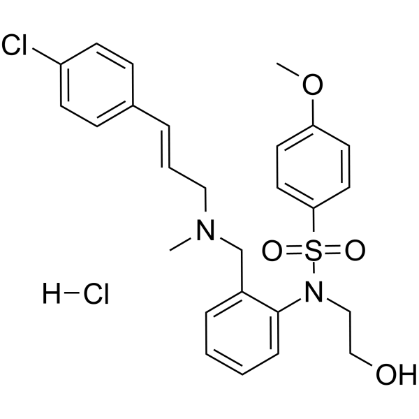 | 生物活性 | KN-93 hydrochloride is a cell-permeable, reversible and competitive inhibitor calmodulin-dependent kinase type II (CaMKII) with a Ki of 370 nM. | ||||||||||||||||