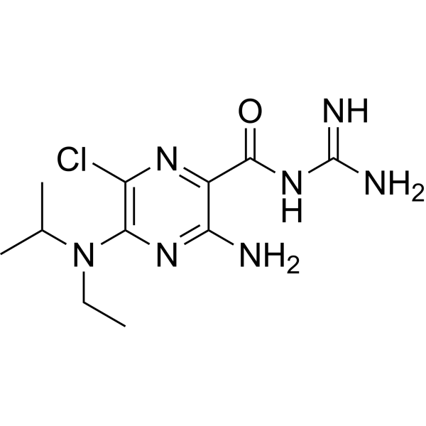 EIPA 是一种 TRPP3 channel 抑制剂,其 IC50 值为 10.5 μM。EIPA 还抑制 Na+/H+ 交换器 (NHE) 和巨噬细胞的增多。