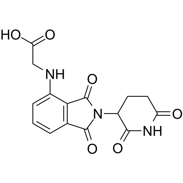 | 产品介绍 | Thalidomide-NH-CH2-COOH 是一种基于 Thalidomide 的,可募集 CRBN 蛋白的 Cereblon 配体。Thalidomide-NH-CH2-COOH 可通过 linker 与靶蛋白配体连接,形成 PROTAC 分子,例如 THAL-SNS-032 (HY-123937)。 | ||||||||||||||||