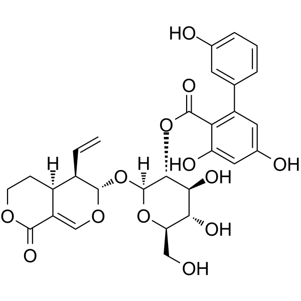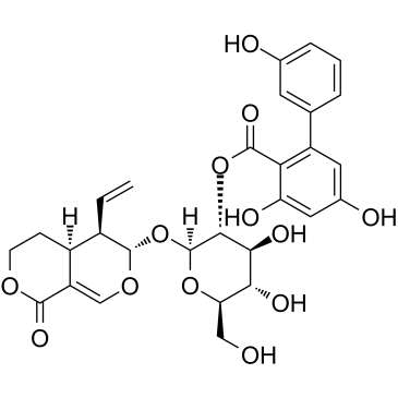 | 生物活性 | Amarogentin is a secoiridoid glycoside that is mainly extracted from Swertia and Gentiana roots. Amarogentin exhibits many biological effects, including anti-oxidative, anti-tumour, and anti-diabetic activities. Amarogentin exerts hepatoprotective and immunomodulatory effects. Amarogentin promotes apoptosis, arrests G2/M cell cycle and downregulates of PI3K/Akt/mTOR signalling pathways. Amarogentin exerts beneficial vasculo-metabolic effect by activating AMPK. | ||||||||||||||||