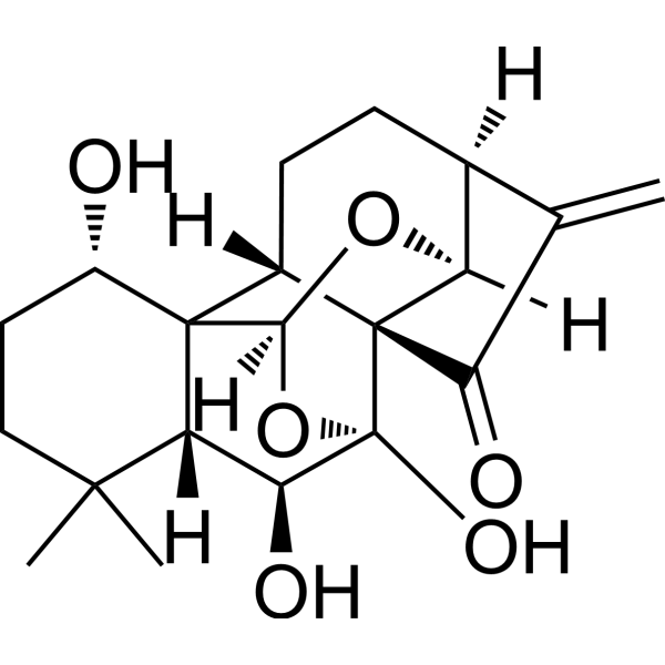 Ponicidin (Rubescensine B) 是源于冬凌草的二萜,具有免疫调节、抗炎、抗病毒和抗癌作用。Ponicidin (Rubescensine B) 可诱导胃癌细胞凋亡(apoptosis),降低 JAK2 和 STAT3 的磷酸化水平,单对其蛋白水平无作用。