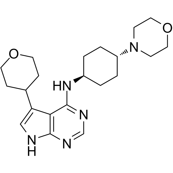 AZ1495,一种弱碱,是一种有效的白细胞介素-1 受体相关激酶 4 (IRAK4) 抑制剂,具有口服活性。AZ1495 对 IRAK4 和 IRAK1 具有良好的理化和激酶选择性,其 IC50 值分别为 0.005 μM 和 0.023 μM。AZ1495 具有 IRAK4 抑制作用,Kd 值为 0.0007 μM。AZ1495 可用于弥漫大 B 细胞淋巴瘤 (DLBCL) 的研究。