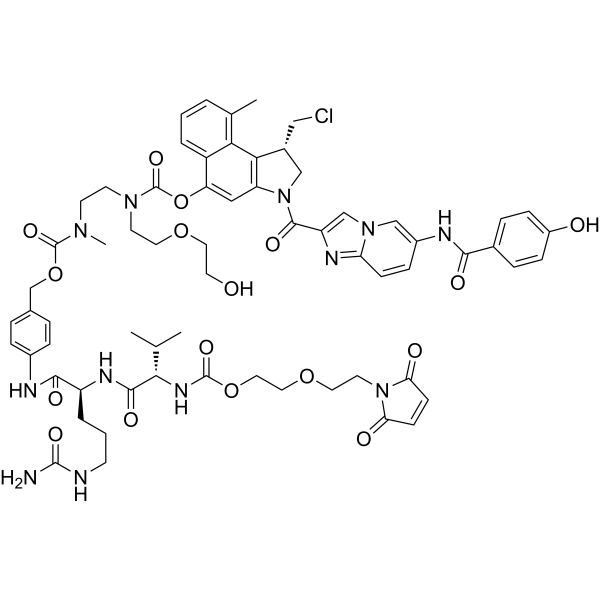 | 生物活性 | Vc-seco-DUBA (SYD985) is a agent-linker conjugate for ADC with potent antitumor activity by using DUBA (DNA alkylating agent), linked via the ADC linker Vc-seco. | ||||||||||||||||