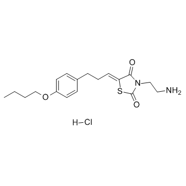 | 生物活性 | K145 hydrochloride is a selective, substrate-competitive and orally active SphK2 inhibitor with an IC50 of 4.3 µM and a Ki of 6.4 µM. K145 hydrochloride is inactive against SphK1 and other protein kinases. K145 hydrochloride induces cell apoptosis and has potently antitumor activity. | ||||||||||||||||||||||||