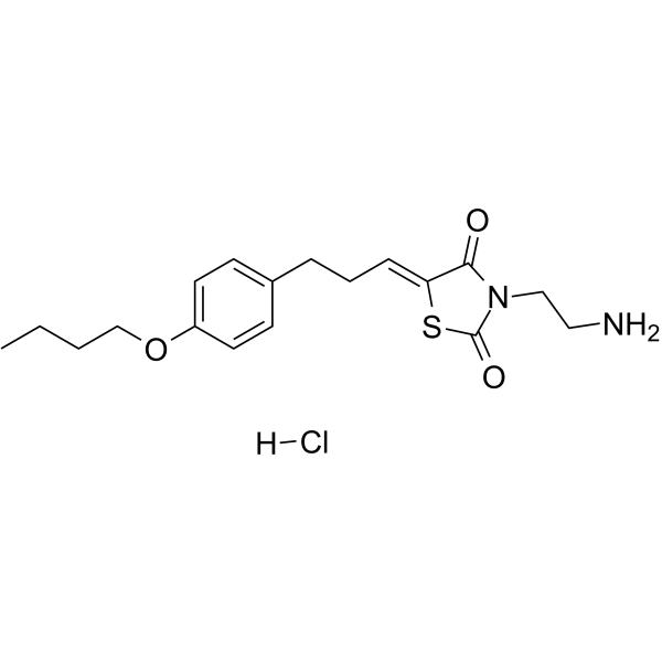 | 产品介绍 | K145 hydrochloride 是一种选择性的,具有底物竞争性和口服活性的 SphK2 抑制剂,IC50 为 4.3 µM,Ki 为 6.4 µM。K145 hydrochloride 对 SphK1 和其他蛋白激酶没有活性。K145 hydrochloride 可诱导细胞凋亡,并具有强大的抗肿瘤活性。 | ||||||||||||||||||||||||