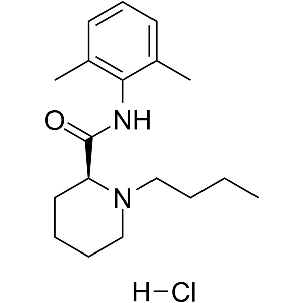 | 生物活性 | Levobupivacaine hydrochloride ((S)-(-)-Bupivacaine monohydrochloride) is a long-acting amide local anaesthetic. Levobupivacaine hydrochloride exerts anaesthetic and analgesic effects through reversible blockade of neuronal sodium channel. Levobupivacaine hydrochloride can inhibit impulse transmission and conduction in cardiovascular and other tissues, possessing certain cardiac and CNS toxicity. Levobupivacaine hydrochloride is metabolized by hepatic cytochrome P450 (CYP450) enzymes in vivo. Levobupivacaine hydrochloride can also induce ferroptosis by miR-489-3p/SLC7A11 signaling in gastric cancer. | ||||||||||||||||||||||||