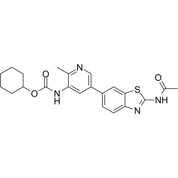 PK68 是一种高效、特异性的受体相互作用激酶 1 (RIPK1) 的 II 型抑制剂,具有口服活性。其 IC50 值约 90 nM,可抑制 RIPK1 依赖性坏死。PK68 对 TNF 诱导的全身炎症反应综合征有较强的改善作用,可用于炎症紊乱和肿瘤转移的研究。