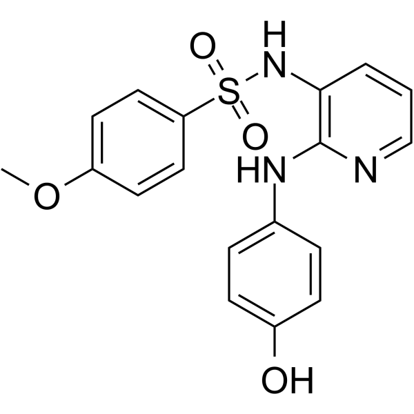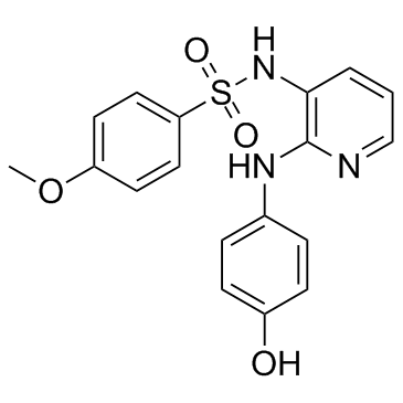 | 生物活性 | ABT-751(E 7010) is a novel bioavailable tubulin-binding and antimitotic sulfonamide agent with IC50 of about 1.5 and 3.4 μM in neuroblastoma and non-neuroblastoma cell lines, respectively. IC50 Value: 1.5 μM(neuroblastoma); 3.4 μM(non-neuroblastoma) Target: Microtubule/Tubulin in vitro: ABT-751 shows the selective cytotoxicity with IC50 of 0.6–2.6 μM in neuroblastoma and 0.7–4.6 μM in other solid tumor cell lines. Furthermore, ABT-751 also exhibits a selective effect on dynamic microtubules and spares stable microtubules, accounting for the persistence of acetylated and detyrosinated α-tubulin positive polymerized tubules at the IC90 concentration of ABT-751. in vivo: In Calu-6 xenograft model, ABT-751 as a single agent at 100 and 75 mg/kg/day shows significant antitumor activity, while in combination with cisplatin, ABT-751 shows a dose-dependent enhancement in growth delay. In the HT-29 colon xenograft model, ABT-751 also shows significant antitumor activity as a single agent and produced a dose-dependent enhancement in growth delay In combination with 5-FU. In dogs with lymphoma, ABT-751 exhibits the dose-limiting toxicities that included vomiting, diarrhea, anorexia, or some combination of these with a maximum tolerated dose (MTD) of 350 mg/m2 PO q24h. Furthermore, the mean AUC and Cmax for ABT-751 at the MTD of 350 mg/m2 is 5.55 μg-hour/mL and 0.9 μg/mL, respectively. | ||||||||||||||||