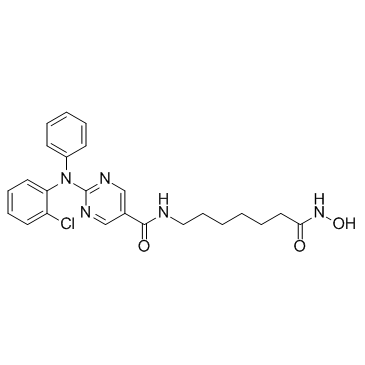 | 生物活性 | Citarinostat (ACY241) is a second generation potent, orally active and high-selective HDAC6 inhibitor with an IC50 of 2.6 nM (IC50s of 35 nM, 45 nM, 46 nM and 137 nM for HDAC1, HDAC2, HDAC3 and HDAC8, respectively). Citarinostat has anticancer effects. | ||||||||||||||||