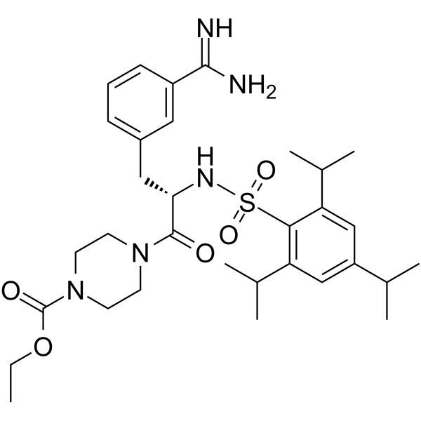 | 生物活性 | UKI-1 (UKI-1C) is a potent urokinase-type plasminogen activator (uPA) inhibitor with a Ki of 0.41 μM. UKI-1 is also a low molecular weight serine protease inhibitor. UKI-1 is a potent antimetastatic agent and inhibits the invasive capacity of carcinoma cells. | ||||||||||||||||
