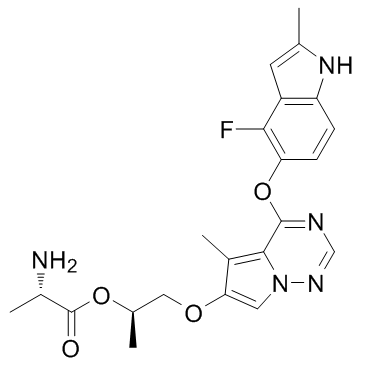 Brivanib alaninate 是一种ATP竞争性的 VEGFR2 抑制剂,IC50 值为 25 nM;可以适度抑制 VEGFR1 和 FGFR1,对 VEGFR2 的选择性是对 PDGFRβ的 240 倍。