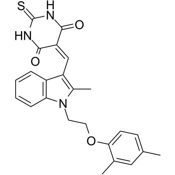 | 生物活性 | ZLDI-8 is a Notch activating/cleaving enzyme ADAM-17 inhibitor and inhibits the cleavage of Notch protein. ZLDI-8 decreases the expression of pro-survival/anti-apoptosis and epithelial-mesenchymal transition (EMT) related proteins. ZLDI-8 is also a competitive and irreversible tyrosine phosphatase (Lyp) inhibitor with an IC50 of 31.6 μM and a Ki of 26.22 μM. ZLDI-8 inhibits the growth of MHCC97-H cells with an IC50 of 5.32 μM. | ||||||||||||||||