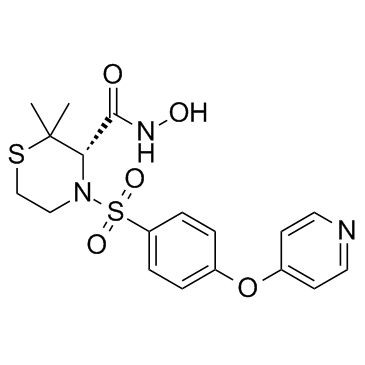 Prinomastat 是一种广谱 MMP 抑制剂, 对 MMP-1,MMP-3 和 MMP-9 的 IC50 值分别为 79, 6.3 和 5.0 nM。