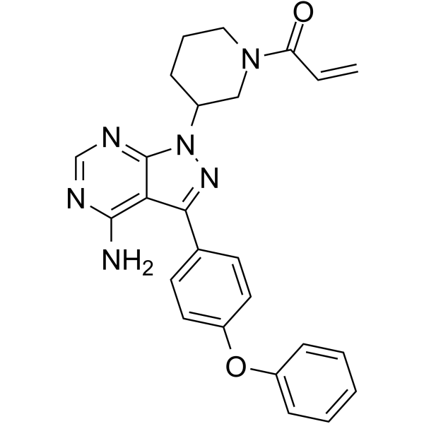 Ibrutinib Racemate (PCI-32765 Racemate) 是 Ibrutinib 的外消旋体。Ibrutinib 是具有选择性的 Btk 的不可逆抑制剂,IC50 值为 0.5 nM。