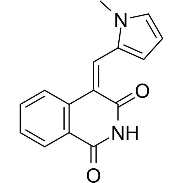 | 生物活性 | BYK204165 is a potent and selective PARP1 inhibitor. BYK204165 inhibits cell-free recombinant human PARP-1 (hPARP-1) with a pIC50 of 7.35 (pKi=7.05), and murine PARP-2 (mPARP-2) with a pIC50 of 5.38, respectively. BYK204165 displays 100-fold selectivity for PARP-1. | ||||||||||||||||