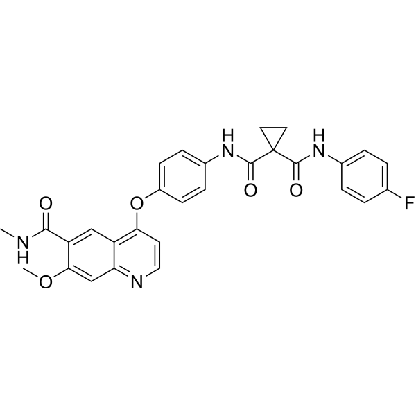 | 生物活性 | Zanzalintinib (XL092) is an orally active, ATP-competitive inhibitor of multiple receptor tyrosine kinases (RTKs) including MET, VEGFR2, AXL and MER, with IC50s in cell-based assays of 15 nM, 1.6 nM, 3.4 nM, 7.2 nM respectively. Zanzalintinib exhibits anti-tumor activity. Zanzalintinib has the potential for kinase-dependent diseases and conditions research. | ||||||||||||||||