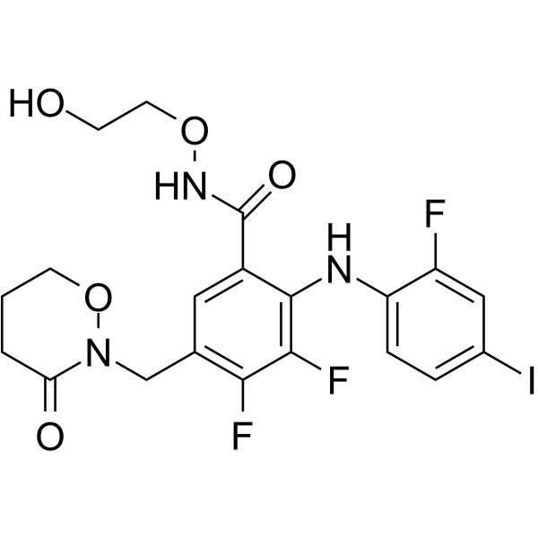 | 生物活性 | RO4987655 is an orally active and highly selective MEK inhibitor with an IC50 of 5.2 nM for inhibition of MEK1/MEK2. | ||||||||||||||||