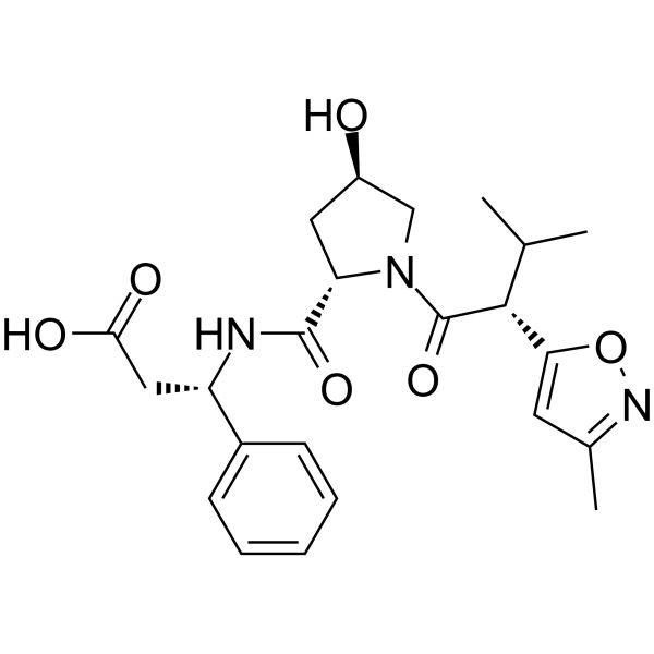 | 生物活性 | VHL Ligand 8 is a VHL ligand. VHL Ligand 8 can be used to synthesize ARD-266 (HY-133020), a highly potent and VHL E3 ligase-based androgen receptor (AR) PROTAC degrader. ARD-266 effectively induces degradation of AR protein in AR-positive LNCaP, VCaP, and 22Rv1 prostate cancer cell lines with DC50 values of 0.2-1 nM. | ||||||||||||||||