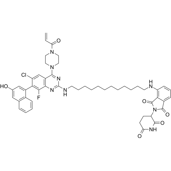 | 生物活性 | PROTAC KRAS G12C degrader-1 is a Cereblon-based KRASG12C PROTAC degrader. PROTAC KRAS G12C degrader-1 induces CRBN/ KRASG12C dimerization and degrades GFP- KRASG12C in reporter cells. | ||||||||||||||||