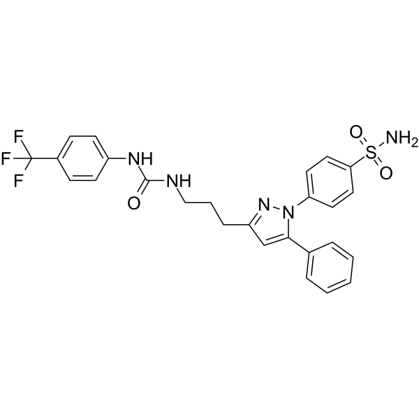 | 产品介绍 | PTUPB 是一种强效的 sEH 和 COX-2 的双向抑制剂,IC50 值分别为 0.9 nM 和 1.26 μM。 | ||||||||||||||||