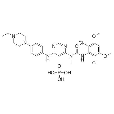 | 生物活性 | Infigratinib phosphate (BGJ-398 phosphate; NVP-BGJ398 phosphate) is a potent inhibitor of the FGFR family with IC50 of 0.9 nM, 1.4 nM, 1 nM, and 60 nM for FGFR1, FGFR2, FGFR3, and FGFR4, respectively. | ||||||||||||||||